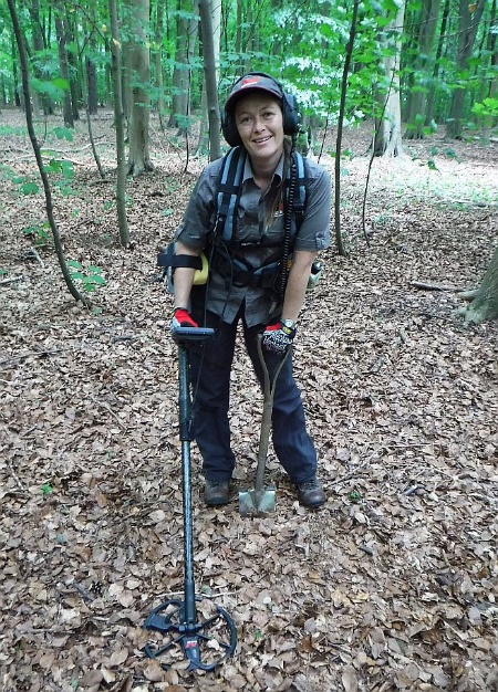 After arriving on site, we set about detecting in the woods. Now, if you’ve never detected in a dense woodland before, here are a few tips: if you own a CTX 3030-using the GPS function, mark where your vehicle is parked as your first find spot as this will ensure you make it back to your car safely as it can be very difficult to do so once you are in the woods with no visible path; always cover yourself with bug spray and plenty of it, and carry a sturdy spade and a serrated digging tool to get through tree roots if you need to.