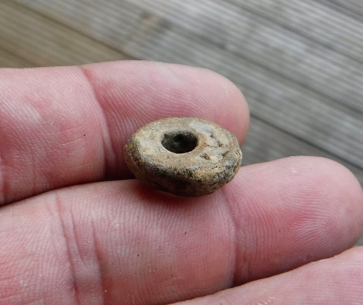 So Derek had a wonderful day of detecting, me, not so much with six shotgun cartridges, but I did manage a pretty cool Roman spindle whorl, which is a conical lead weight placed at the end of a wooden spindle that is then used for spinning sheep wool into yarn.