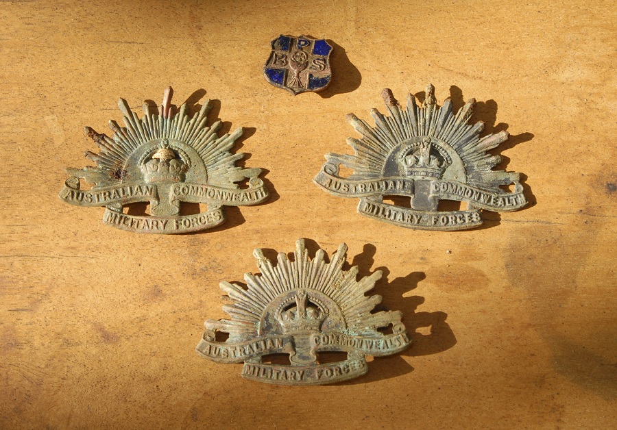 Once back home, it was time to have a closer look at my finds. The badge that I found first, turns out to be a 1932 Blessed sacrament badge from St Patrick’s College in Ballarat , Victoria, on the other side of the country. Did some young soldier from over east drop it here in Western Australia while waiting to be deployed overseas?