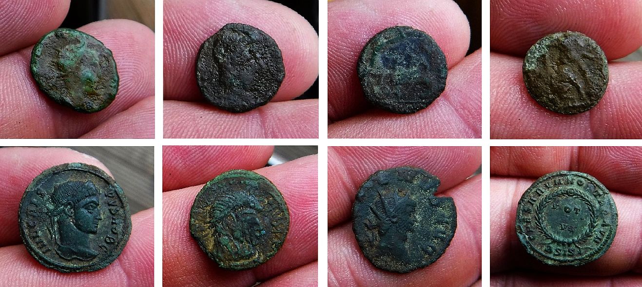 Within an hour of searching, we each had a couple of small roman coins called minims. These are very small coins, about the size of a dime, or smaller, and although they were the lowest value of coins used in Roman Britain, we were both delighted with the finds - just think, the last person to hold those coins was most probably a Roman soldier stationed in England around 1,700 years ago. We proceeded to find a couple more low denomination Roman bronze coins, some of which were in remarkably good condition.
