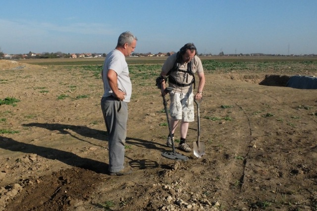 We started the day with a walk into Vinkovci for breakfast and to buy some snacks for the days detecting. Food in Croatia (away from the tourist areas) is very inexpensive. I ordered beef and eggs while Richard tucked into a plate of ham n eggs (bacon and eggs). I was presented with an 8 Oz fillet steak topped with two fried eggs. We drank copious amounts of coffee and when the bill came it was under £15. This value for money continued with our lunch, 45p pepperoni pizzas from the bakery, a hearty meal.