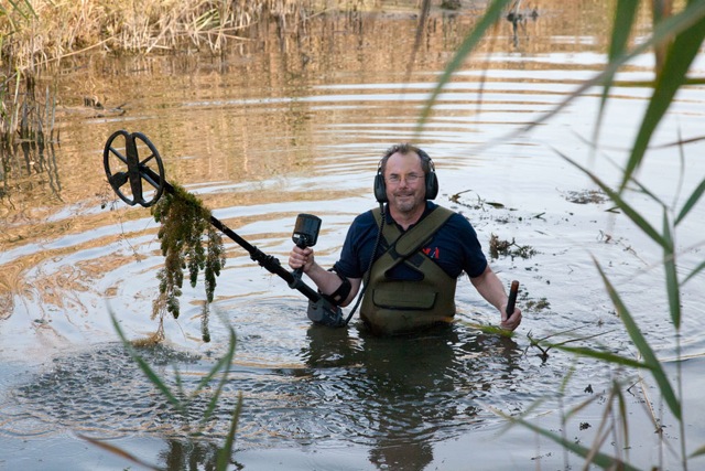 So I got out of the water, took off my waders and switched the coil on my CTX 3030 to the 17" and started to search the area where the dredgings had been spread.