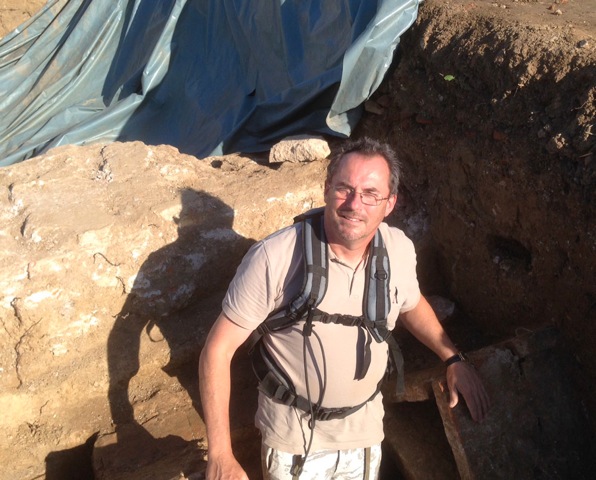 We arrived half-an-hour before the archeologists, so Steve took us on a site tour first showing us where the Roman remains were concentrated, before switching to more recent historic events. He said we were in no-mans land on the frontline in the battle between the Croats and the Serbs. Steve pointed out a house in the distance with a white satellite dish on the roof "that was my sniper position". At the opposite side of the 2km field was an orchard where the Serbs had had their artillery. So we were in a field that had previously been heavily mined and where a modern conflict had raged only 23 years previously.