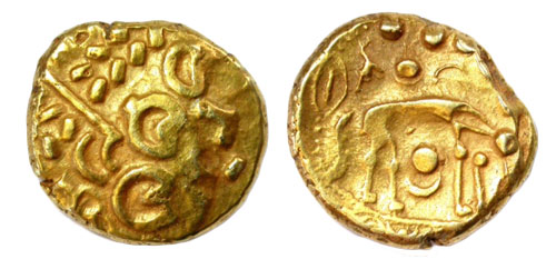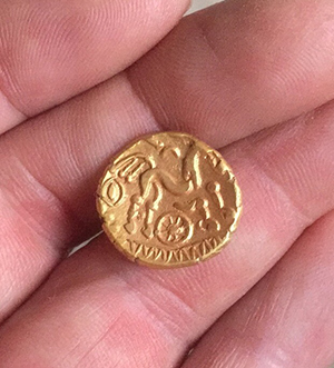 These coins weigh an average 6 grams and usually consist of 90% gold. They date from 150BC to about 50 AD in the UK. I sent Trevor one so he could test new coils with it…This has proved to be a good investment.