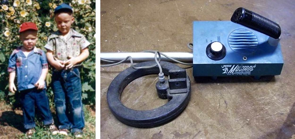 One weekend in 1972, Bill (who had moved to a larger City after graduation) came back to our folk’s house for a weekend visit. When he arrived, he told me that he had rented a metal detector. I’d read about them in Popular Mechanics magazine, but had never seen one in action. With little coaxing, we decided to go to the local park to see what might have been lost over the years. In anticipation of a bountiful harvest, we grabbed what tools we thought we might need…one of mom’s old butcher knives to dig the holes, and one of our dad’s nail aprons to carry our coins.